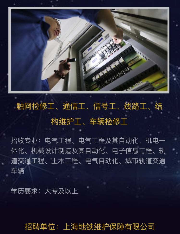 找工作的同学快快看过来!上海申通地铁和上海隧道股份招聘啦~岗位包括触网检修工、通信工、技术助理、智慧城市建设与运营、BIM设计……总有一款适合你! 具体招聘方法、报名时间、联系方式等详见下文